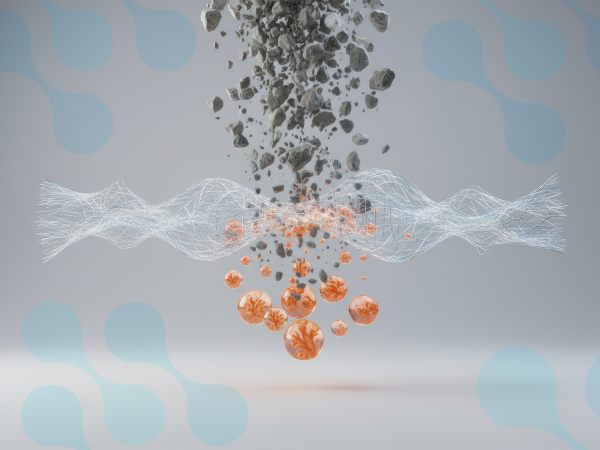 Representação digital de um firewall de rede, mostrando partículas e uma linha de proteção estilizada que simboliza a barreira contra ameaças cibernéticas.